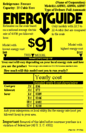 - Energy Guide cost labels are used on refrigerators, refrigerator-freezers, freezers, water heaters, dishwashers, and clothes washers.